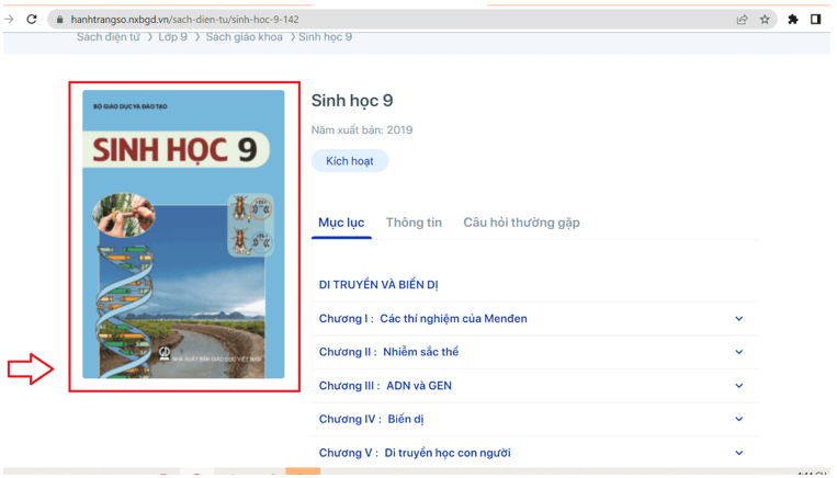 Bước 3: Nhấn chọn sách Môn Sinh học: https://hanhtrangso.nxbgd.vn/sach-dien-tu/sinh-hoc-9-142