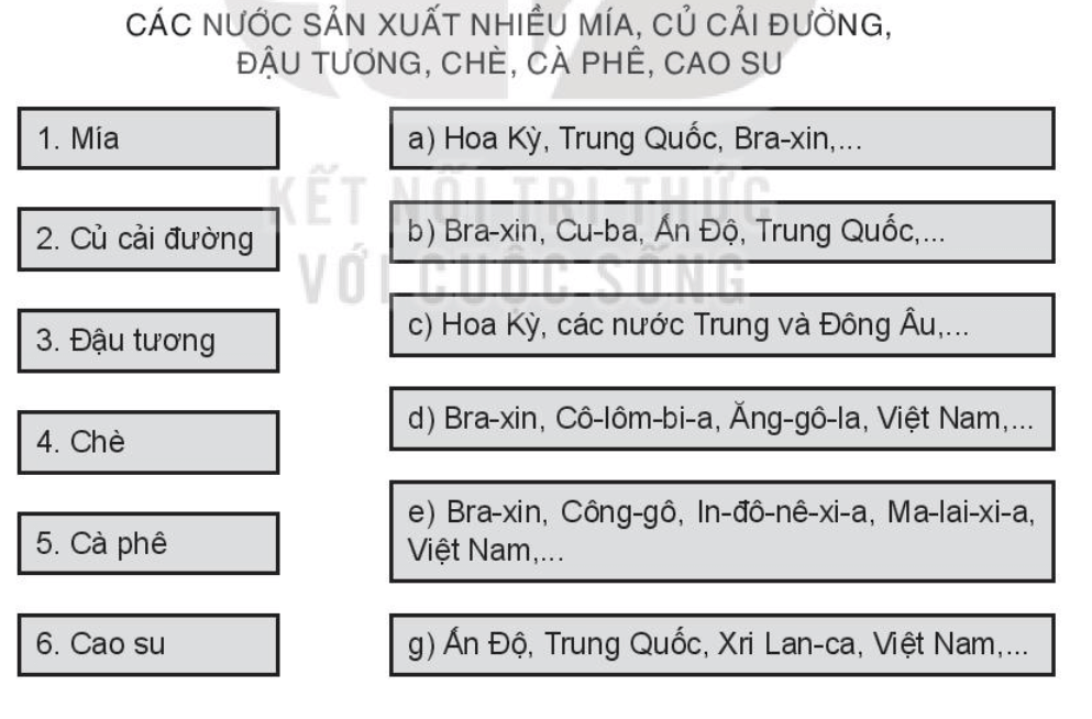 Bài tập 3 trang 61 SBT Địa Lí 10: Ghép ô bên trái với ô bên phải sao cho phù hợp.