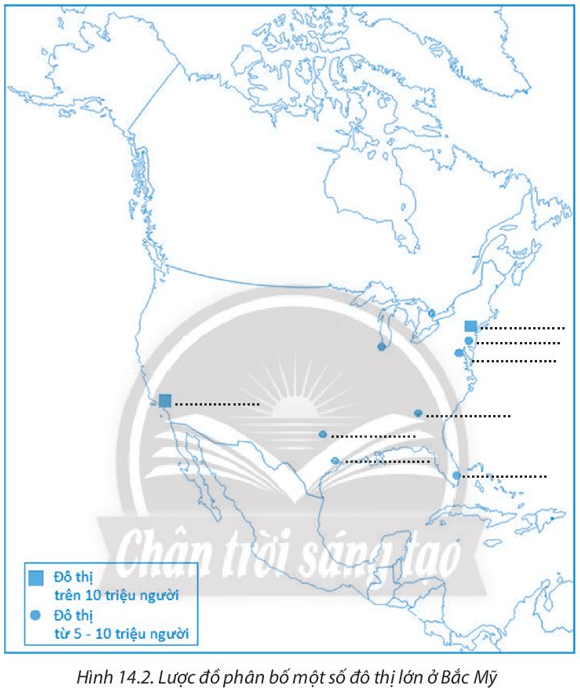 2. Nhận xét và giải thích về sự phân bố các đô thị ở Bắc Mỹ.