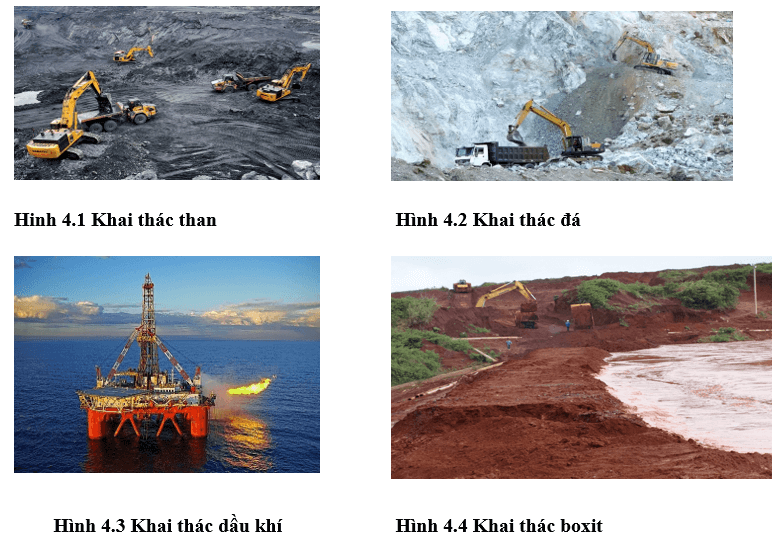 Câu 4 trang 18 SBT Địa Lí 8: Hãy sưu tầm hình ảnh về hiện trạng khai thác một số tài nguyên khoáng sản ở nước ta. Dán hình ảnh vào các ô tương ứng và ghi tên hình vào chỗ trống (……....) dưới hình.