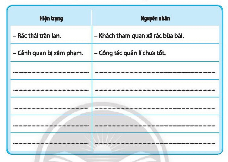 Bài tập 1 trang 51 sách bài tập HĐTN 7: Quan sát khu vực tham quan và hoàn thành bảng sau: