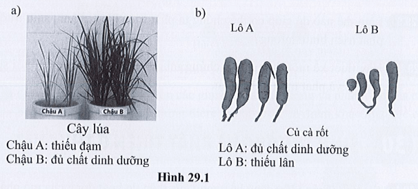 Bài 29.3 trang 63 sách bài tập KHTN 7: Quan sát hình 29.1, nêu vai trò của chất dinh dưỡng đối với từng loài cây. Từ đó rút ra vai trò của chất dinh dưỡng đối với sự sinh trưởng và phát triển của thực vật.