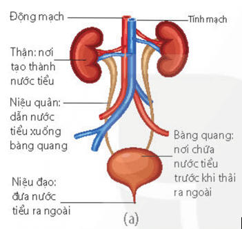 A. Thận - lọc máu, tạo nước tiểu; niệu quản - dẫn nước tiểu xuống bàng quang; bàng quang - nơi chứa nước tiểu; niệu đạo - thải nước tiểu ra ngoài.