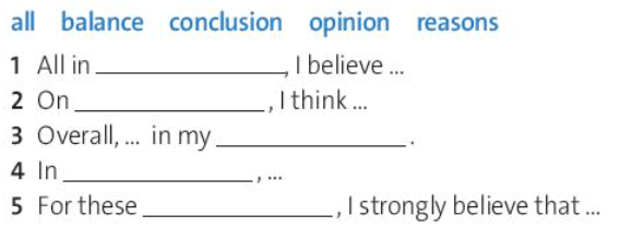 3 (trang 71 SBT Tiếng Anh 10 Friends Global)Complete the phrases for summing up using the words below. Underline the phrase that the writer uses in the letter in exercise 1. (Hoàn thành các cụm từ để tính tổng bằng các từ bên dưới. Gạch chân cụm từ mà người viết sử dụng trong bức thư ở bài tập 1.)