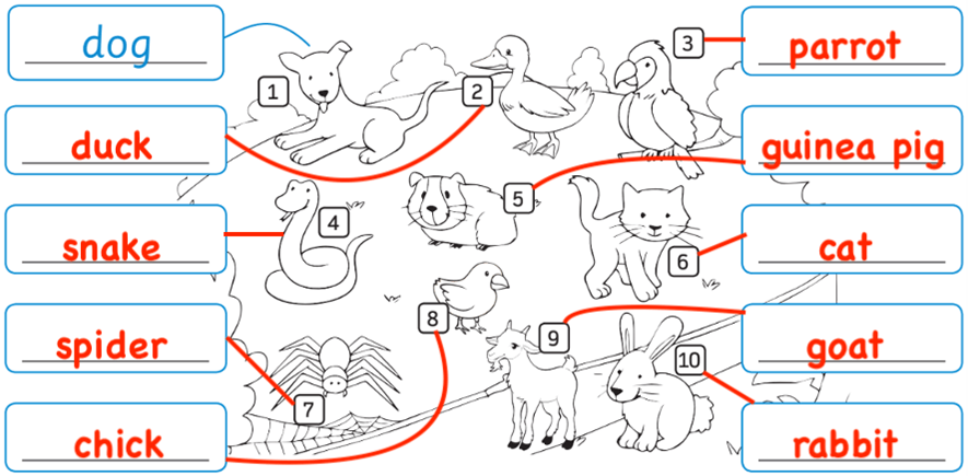 2 (trang 68 sách bài tập Tiếng Anh lớp 3 English Discovery):Look, match and write (Nhìn, nối và viết)