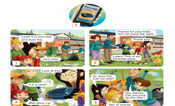 5. Bố: Cảm ơn sự giúp đỡ của các cháu! Các cháu có thể có chiếc ra-đi-ô.