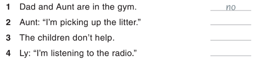 14 (trang 24 sách bài tập Tiếng Anh lớp 3 Guess What!): Look at activity 13. Write yes or no. (Nhìn vào hoạt động 13. Viết đúng hoặc sai.)