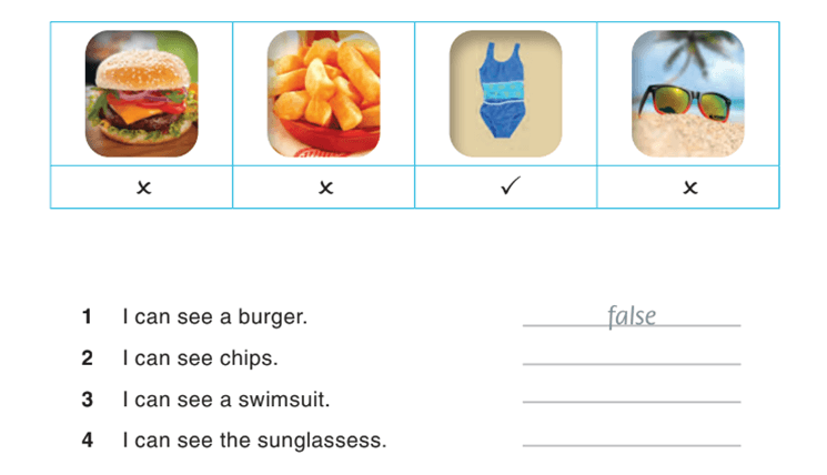 2 (trang 67 sách bài tập Tiếng Anh lớp 3 Guess What!): Read the table. Then write true or false. (Đọc bảng. Sau đó viết đúng hoặc sai.)