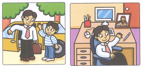 Tôi là Jason. Đó là bố tôi. Ông ấy làm việc trong một văn phòng. Ông ấy mặc quần đen và áo sơ mi.