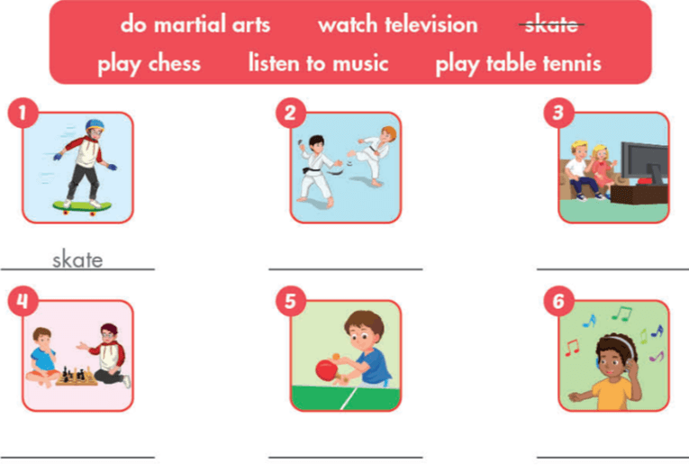 D (trang 35 SBT Tiếng Anh lớp 4 iLearn Smart Start): Look and write. (Nhìn và viết.)
