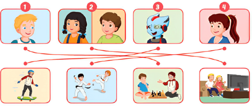 C (trang 35 SBT Tiếng Anh lớp 4 iLearn Smart Start): Listen and draw lines. (Nghe và nối.)