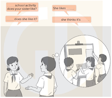 Em gái của bạn thích hoạt động nào ở trường? – Cô ấy thích làm dự án.