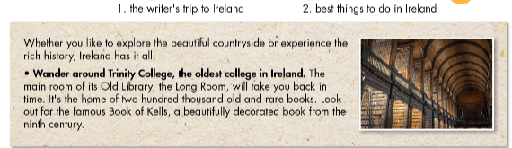 • Đi dạo quanh Trinity College, trường cao đẳng lâu đời nhất ở Ireland. Phòng chính của Thư viện cũ, Phòng dài, sẽ đưa bạn quay ngược thời gian. Đây là ngôi nhà của hai trăm nghìn cuốn sách cổ và quý hiếm. Hãy để ý đến Sách Kells nổi tiếng, một cuốn sách được trang trí đẹp mắt từ thế kỷ thứ chín.