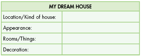 My dream house will be in the city. love cities. They're so busy and exciting. I don't really know what city would like to live in. It will be big house and have all the best modern equipment. will have a big fridge, a nice oven, and lots of space for The kitchen me to cook. The living room will be big, too. It will have a huge skylight, so it'll be nice and bright in the day time. I think about my bedroom a lot. want it to be small and cozy. want thick curtains, a TV, a game console, and a really comfy bed. The yard will be really nice. It will have a patio so that I can have barbecues. It will also have a small vegetable garden so can grow my own food.