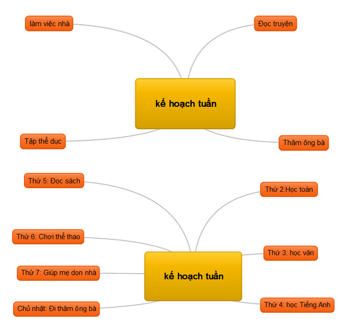 Một số ví dụ về sơ đồ tư duy thể hiện kế hoạch một tuần:
