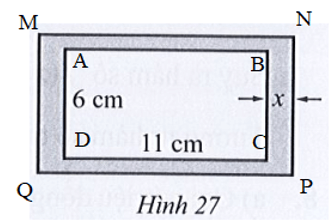 Bài 55 trang 63 SBT Toán 10 Tập 1: Bác Nam dự định làm một khung ảnh hình chữ nhật sao cho phần trong của khung là hình chữ nhật có kích thước 6cm x 11cm, độ rộng viền xung quanh là x cm (Hình 27). Diện tích của viền khung ảnh không vượt quá 38 cm2. Hỏi độ rộng viền khung ảnh lớn nhất là bao nhiêu xăng – ti – mét?