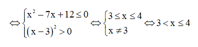 Vậy bất phương trình có tập nghiệm là (3; 4].