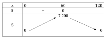 S' = 0 ⇔ x = 60 (vì 0 < x < 120).