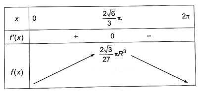 Hình nón có thể tích lớn nhất khi x = ≈ 1,63π.