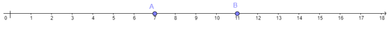 Trên hình vẽ, điểm A biểu diễn số 7, điểm B biểu diễn số 11.