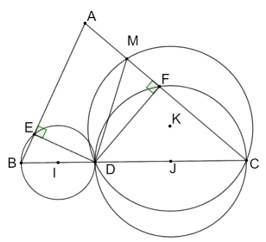 b) Giả sử M là một điểm tuỳ ý khác F, nằm giữa A và C; gọi K là tâm đường tròn ngoại tiếp tam giác MDC. Chứng minh rằng hai đường tròn (I) và (K) cắt nhau.