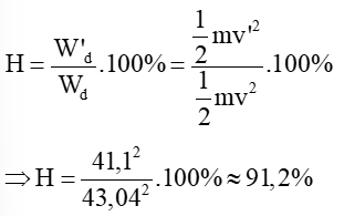 b. Trên thực tế, vận tốc cực đại của tàu lượn đạt được là 41,1 m/s. Tính hiệu suất của quá trình chuyển đổi thế năng thành động năng của tàu lượn.