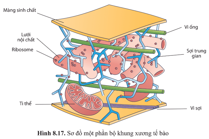 Quan sát hình 8.17, nêu các thành phần cấu tạo của bộ khung tế bào và chức năng của chúng