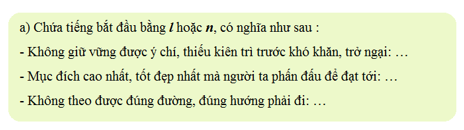 a. Chứa tiếng bắt đầu bằng l hoặc n, có nghĩa như sau :