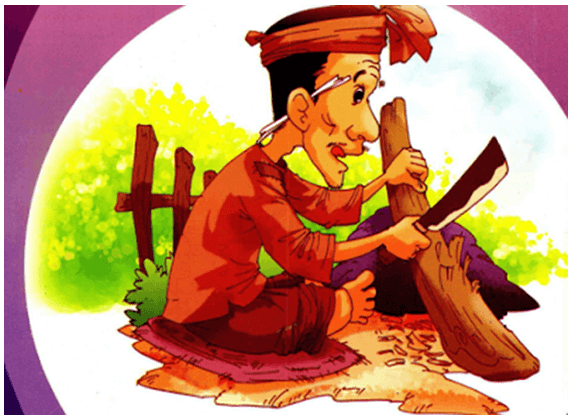 Hoàn cảnh người thợ mộc: người thợ mộc dốc hết vốn trong nhà ra để mua gôc để làm nghề đẽo cày. Cửa hành anh ta ở lề đường và có nhiều người thường ghé vào xem anh ta đẽo cày.