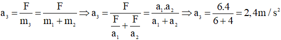 Bài 1: Lấy một lực F truyền cho vật khối lượng m1 thì vật có gia tốc là a1 = 6m/s2, truyền cho vật khối lượng m2 thì vật có là a2 = 4m/s2. Hỏi lực F sẽ truyền cho vật có khối lượng m3 = m1 + m2 thì vật có gia tốc là bao nhiêu?