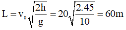 Bài 1: Một quả bóng được ném theo phương ngang với vận tốc đầu có độ lớn là v0 = 20m/s từ độ cao 45m. Hỏi tầm bay xa theo phương ngang của quả bóng bằng bao nhiêu? Lấy g = 10m/s2 và bỏ qua sức cản của không khí.