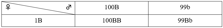 Người chồng có 1 trong 2 kiểu gen 1BB hoặc 198Bb sẽ cho các loại giao tử với tỉ lệ là 100 giao tử B và 99 giao tử b.