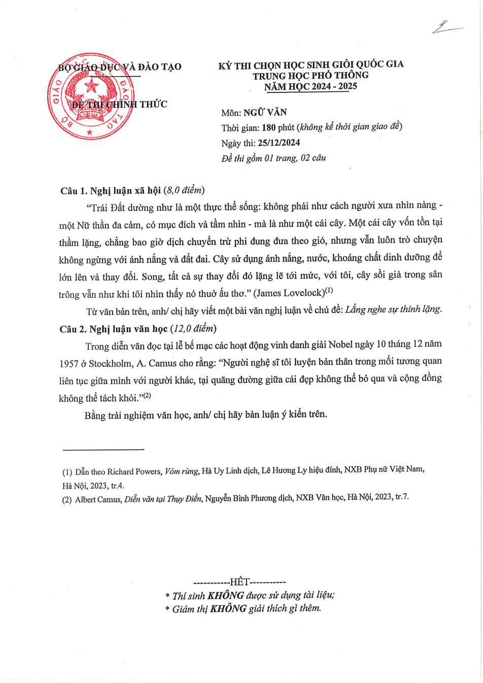 - Đề thi chọn HSG Quốc gia Văn năm 2025 (có đáp án)