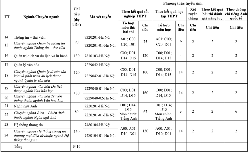 - Phương thức 3: Xét tuyển theo kết quả bài thi đánh giá năng lực do Đại học Quốc gia Hà Nội và Đại học Quốc gia TP. Hồ Chí Minh tổ chức năm 2025
