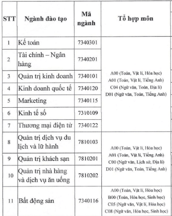 11. Ký hiệu mã ngành, chỉ tiêu, tổ hợp xét tuyển
