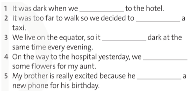 1. Trời đã tối khi chúng tôi đến khách sạn.