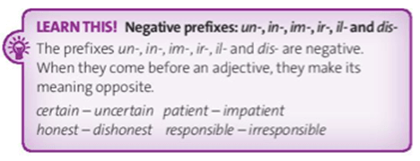 Tiền tố phủ định: un-, in-, im-, ir-, il- and dis-