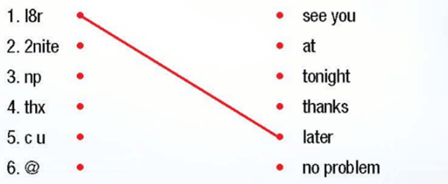 b (trang 10 sgk Tiếng Anh 10 Smart World): Now, read and match the text language to its meaning. (Bây giờ, đọc và nối ngôn ngữ tin nhắn với nghĩa của nó.)