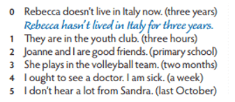 5 (trang 26 Tiếng Anh 10 THiNK): Write sentences using the present perfect with for or since. (Viết lại những câu sau sử dụng thì hiện tại hoàn thành với for hoặc since.)