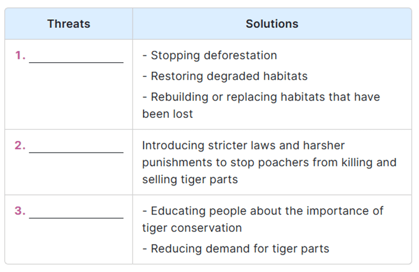 Subject: Threats facing tigers and possible solutions