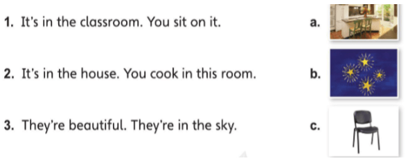1. Nó ở trong lớp học. Bạn ngồi lên nó