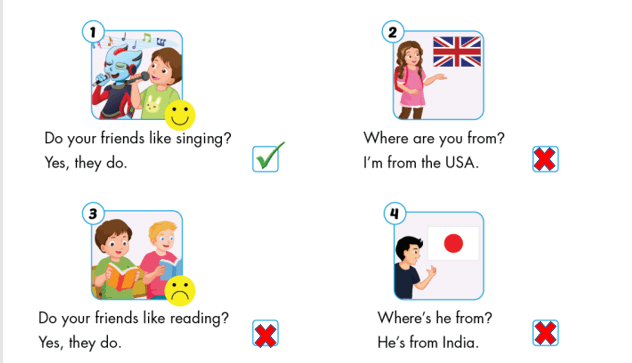 1. Bạn của bạn có thích hát không? – Có, họ thích hát