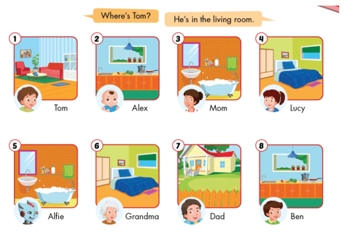 3. Tom đang ở đâu? Tom đang ở phòng khách