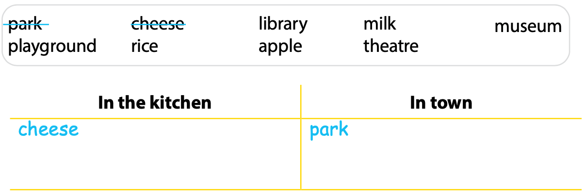 2. chợ - Bạn có thể mua táo và lê tại đây.