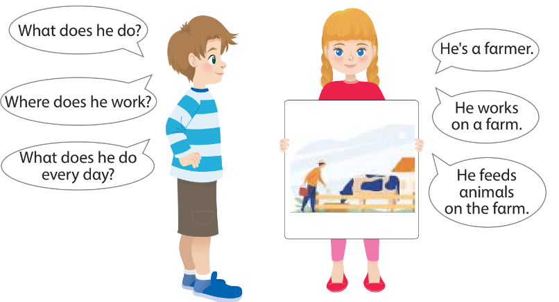 2. Một người nông dân làm gì? – Một người nông dân làm việc trên trang trại.
