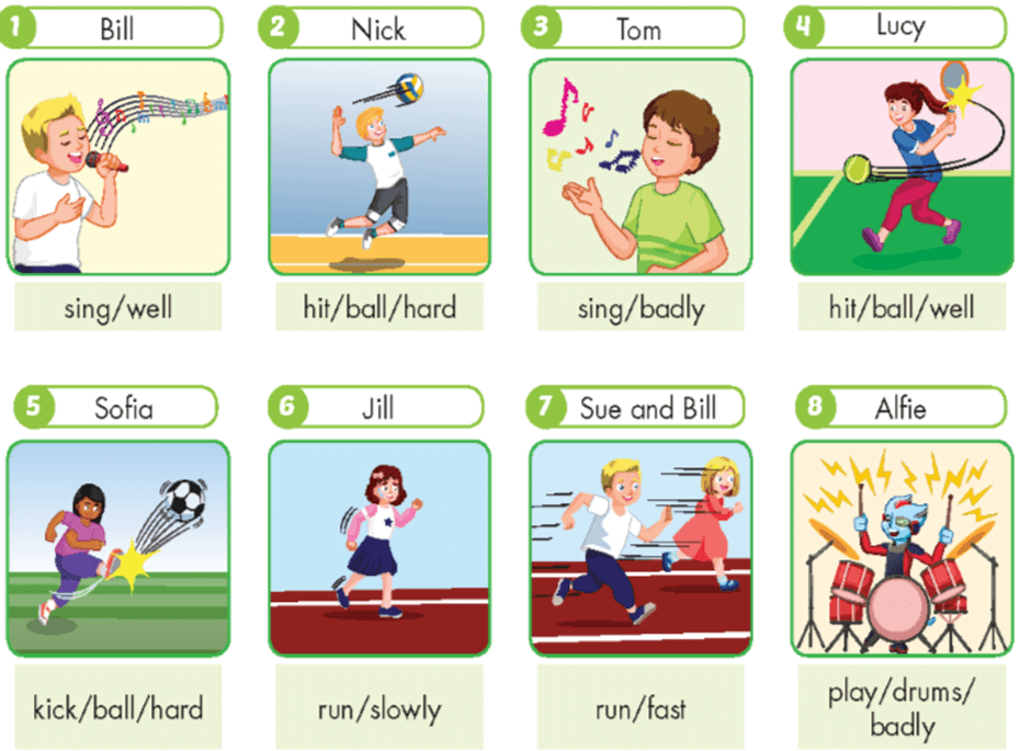 2. Nick chơi bóng chuyền giỏi lắm. Anh ấy đánh bóng rất mạnh.