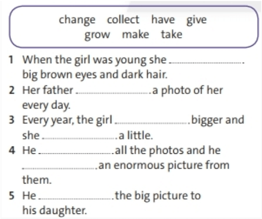 (Hoàn thành các câu bằng cách sử dụng dạng quá khứ đơn của động từ)
