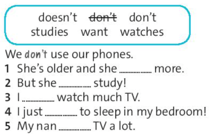 4. Dạng phủ định sử dụng "doesn't" + infinitive mà không có sau "he / she / it"