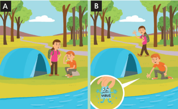 1 (trang 47 SGK Tiếng Anh 7 English Discovery): Look at the cartoons. Which version, A or B, matches the text? Read the information about phrasal verbs to check your answer. (Nhìn vào phim hoạt hình. Phiên bản nào, A hoặc B, phù hợp với văn bản nào? Đọc thông tin về cụm động từ để kiểm tra câu trả lời của bạn.)