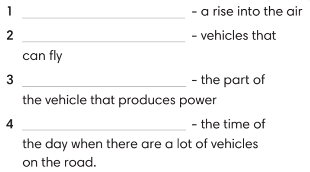 4 (trang 92 SGK tiếng Anh 7 English Discovery)In pairs, ask and answer questions about the flying cars in Exercise 1. Use the following words. (Theo cặp, hỏi và trả lời các câu hỏi về những chiếc ô tô bay trong Bài tập 1. Sử dụng các từ sau.)